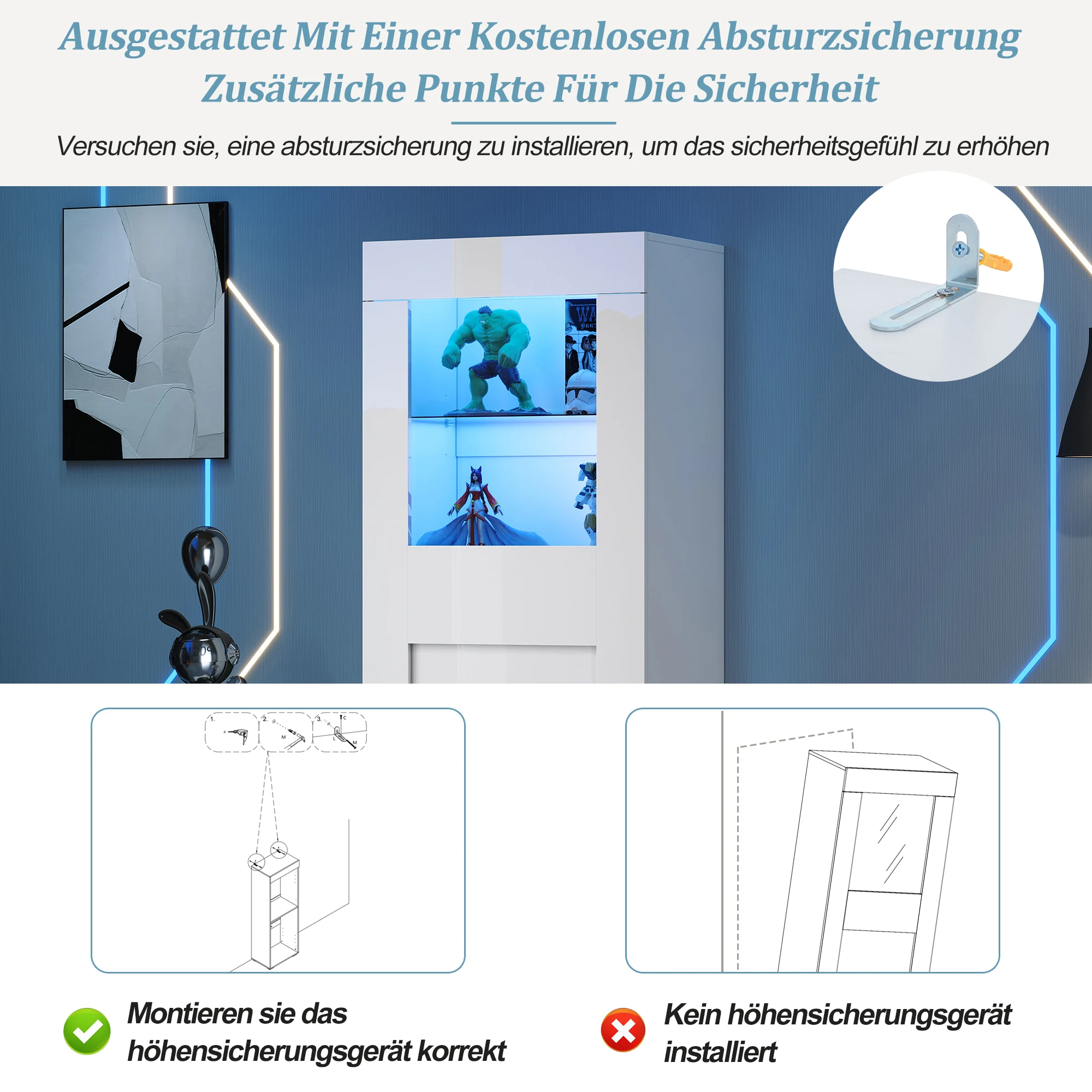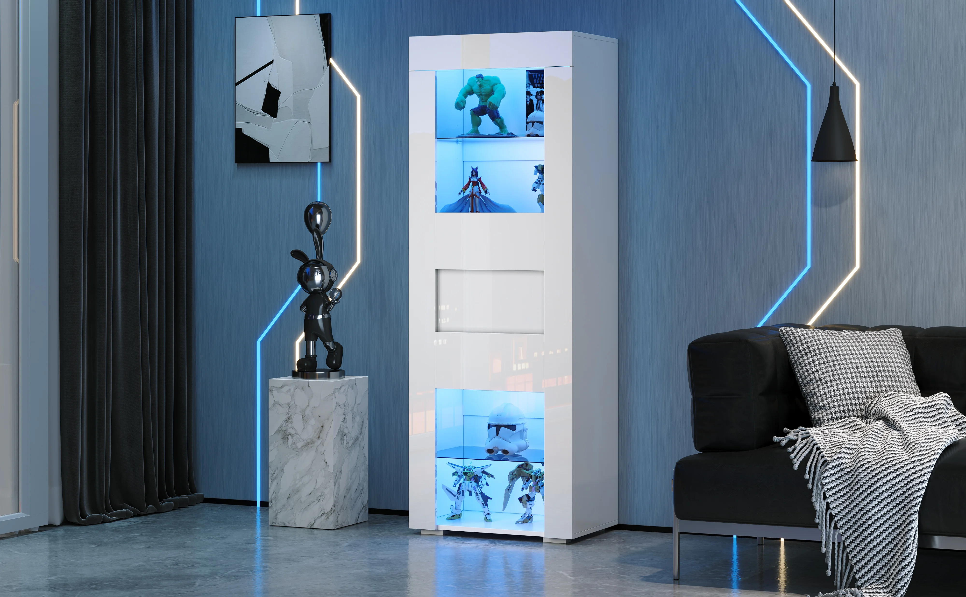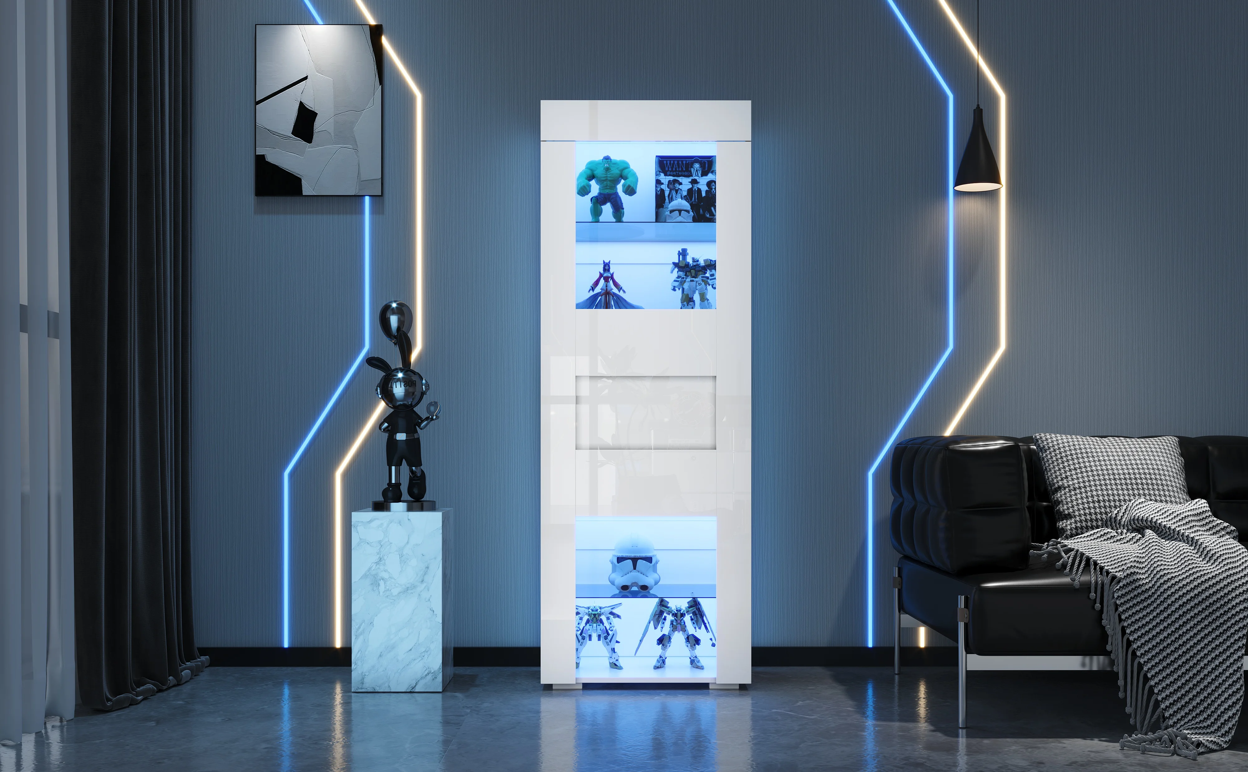 Easy to clean: The high-gloss surface of the front is smooth and delicate, making it incredibly easy to clean. A gentle wipe removes dust and stains, ensuring the display cabinet always looks new. The high-gloss surface is limited to the front of the cabinet.