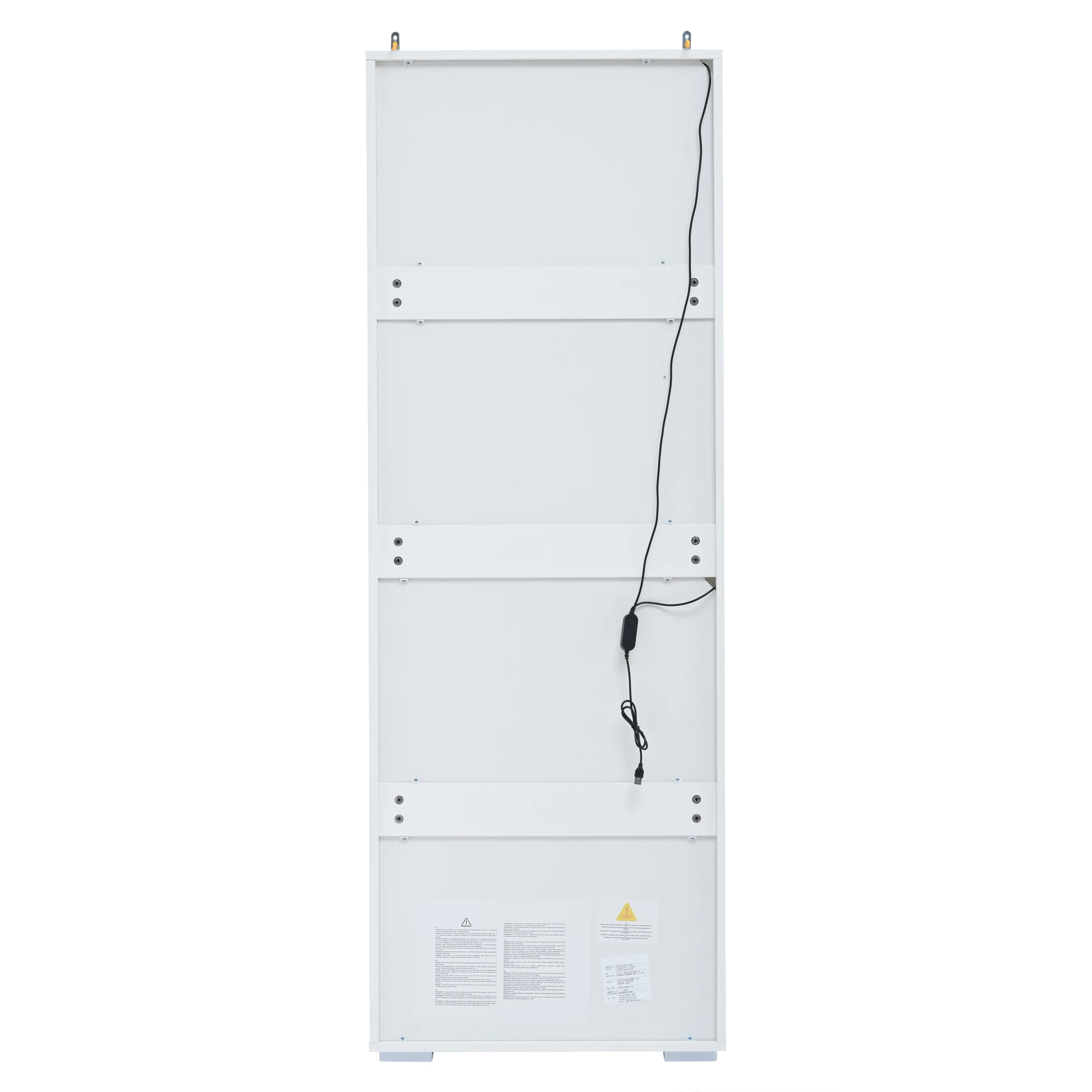Multi-layered storage: The interior consists of two tempered glass panels at the top and bottom, as well as a medium-density fiberboard panel in the middle, dividing the display cabinet into four storage areas. The two tempered glass panels are adjustable to accommodate decorative items of different sizes. Books, accessories, collectibles, and more will all find their place here, meeting your diverse storage needs.