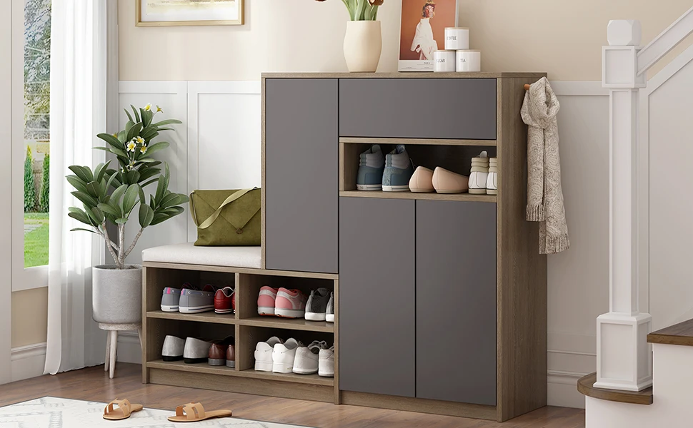 Banco de armazenamento de sapatos e armário de sapatos, banco de sapatos, rack multifuncional com assento acolchoado, solução de armazenamento versátil com