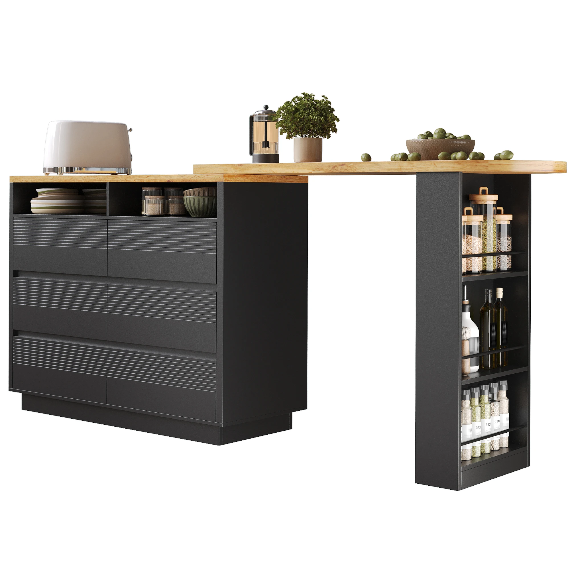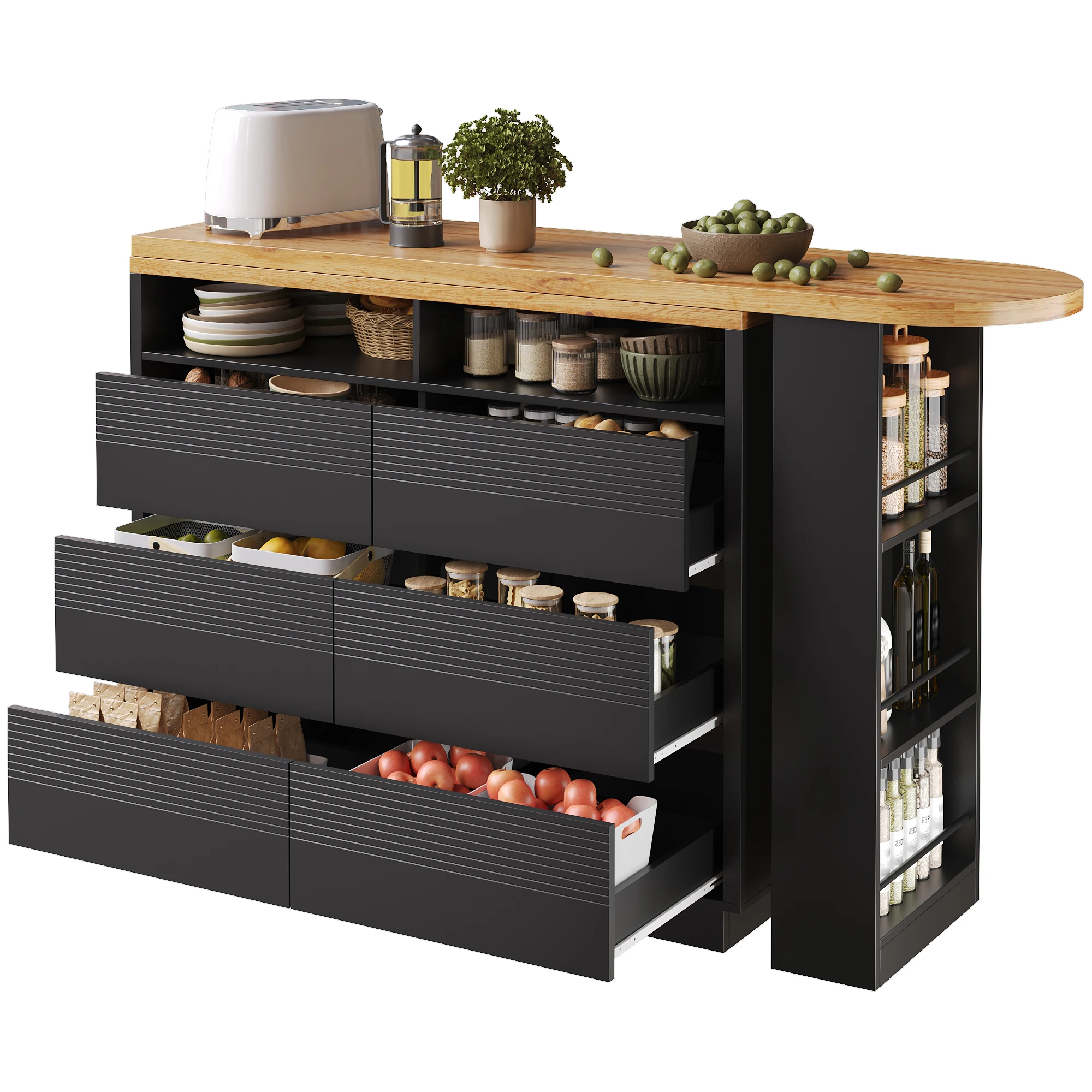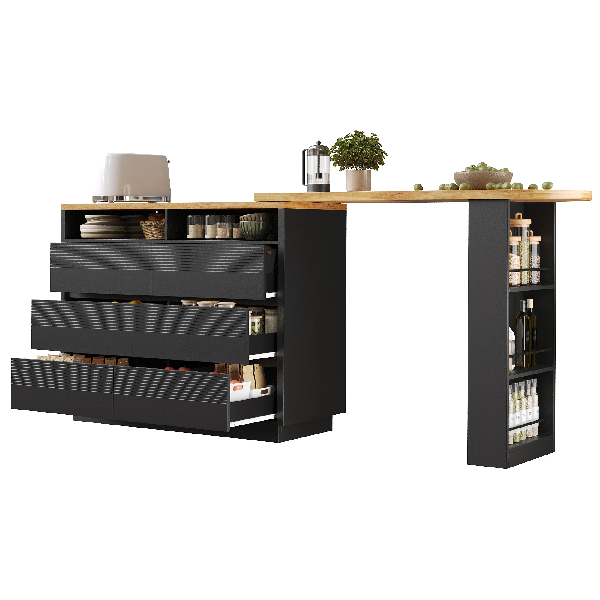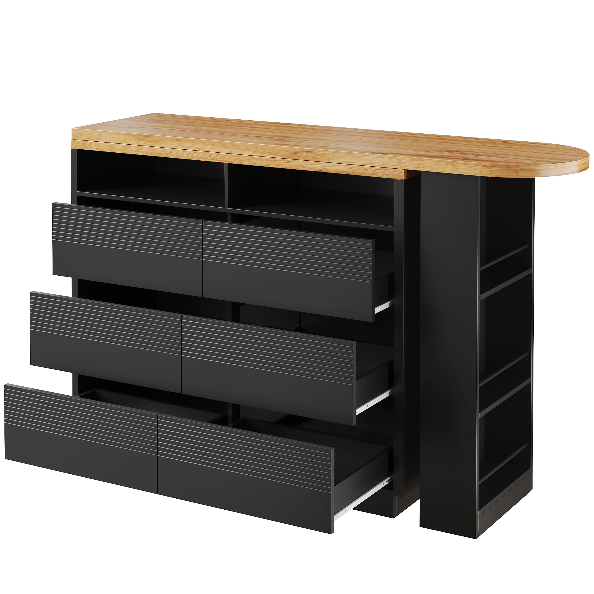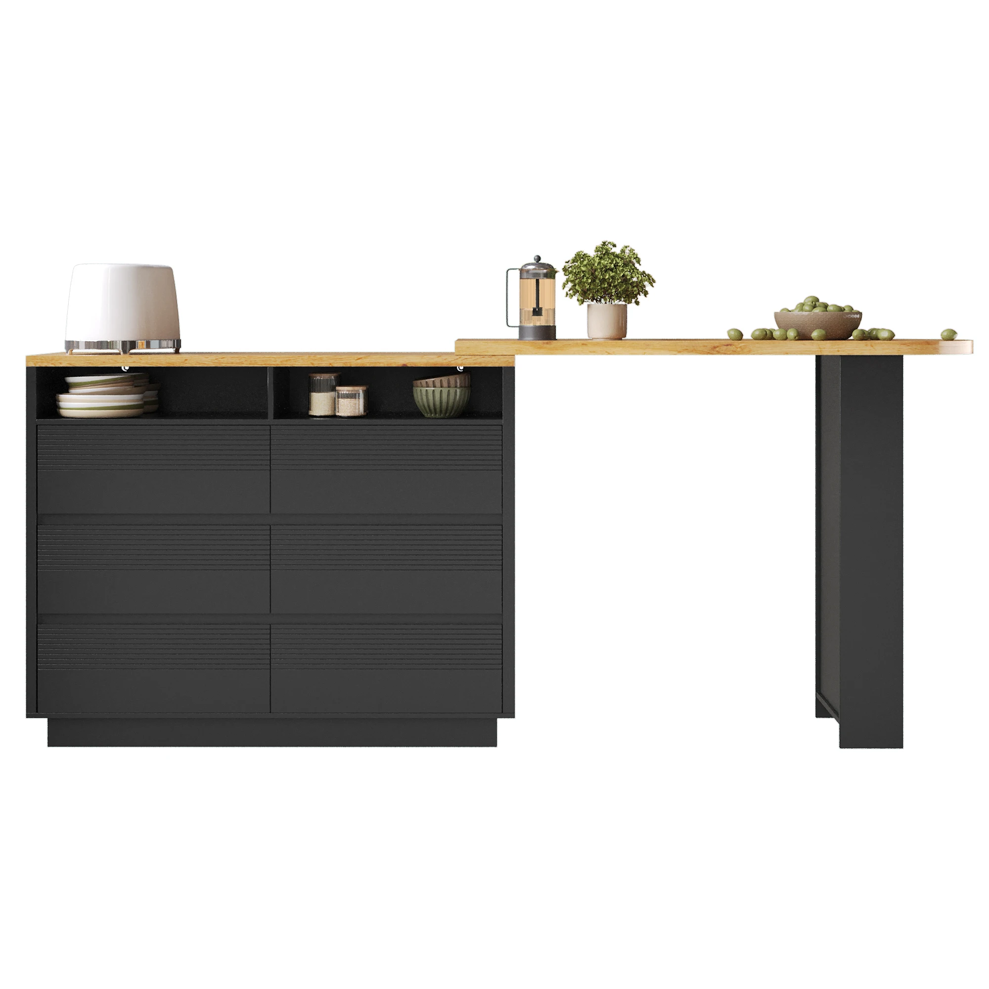 Extendable bar table with storage (137-215×39×102.3cm), Modern movable bar table, Telescopic bar table with six drawers