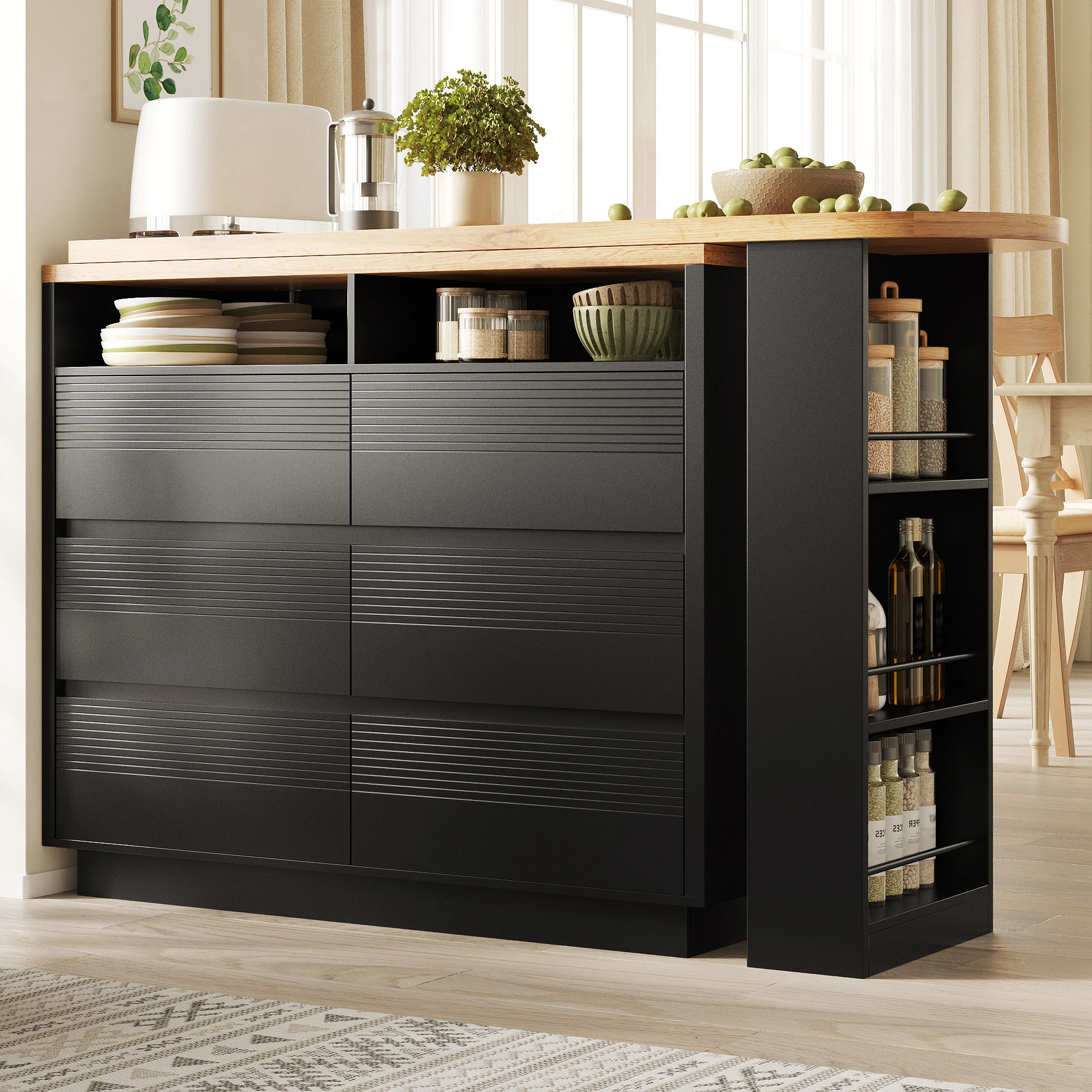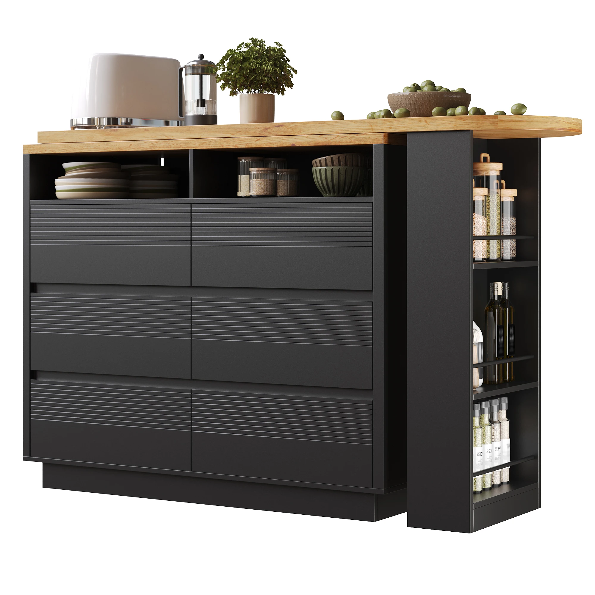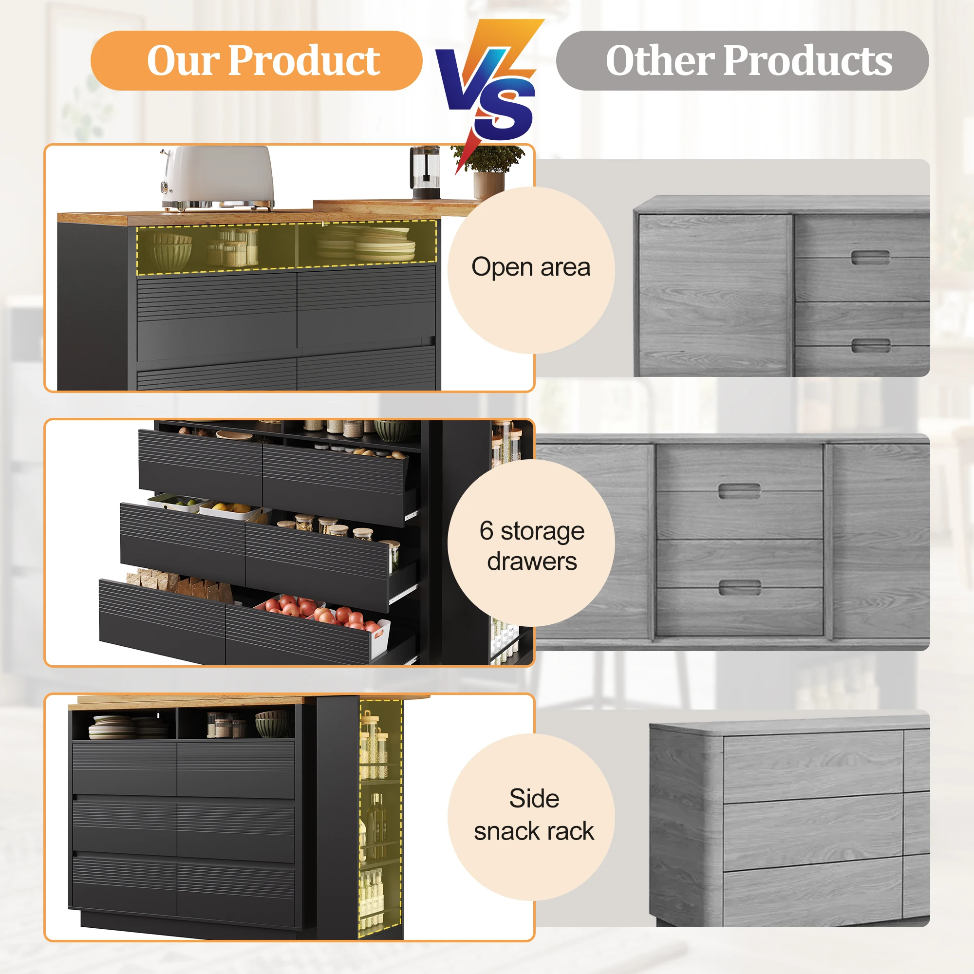3. Versatile storage: Six spacious drawers and a side snack shelf provide organized storage. Saves space and keeps your work surface tidy.