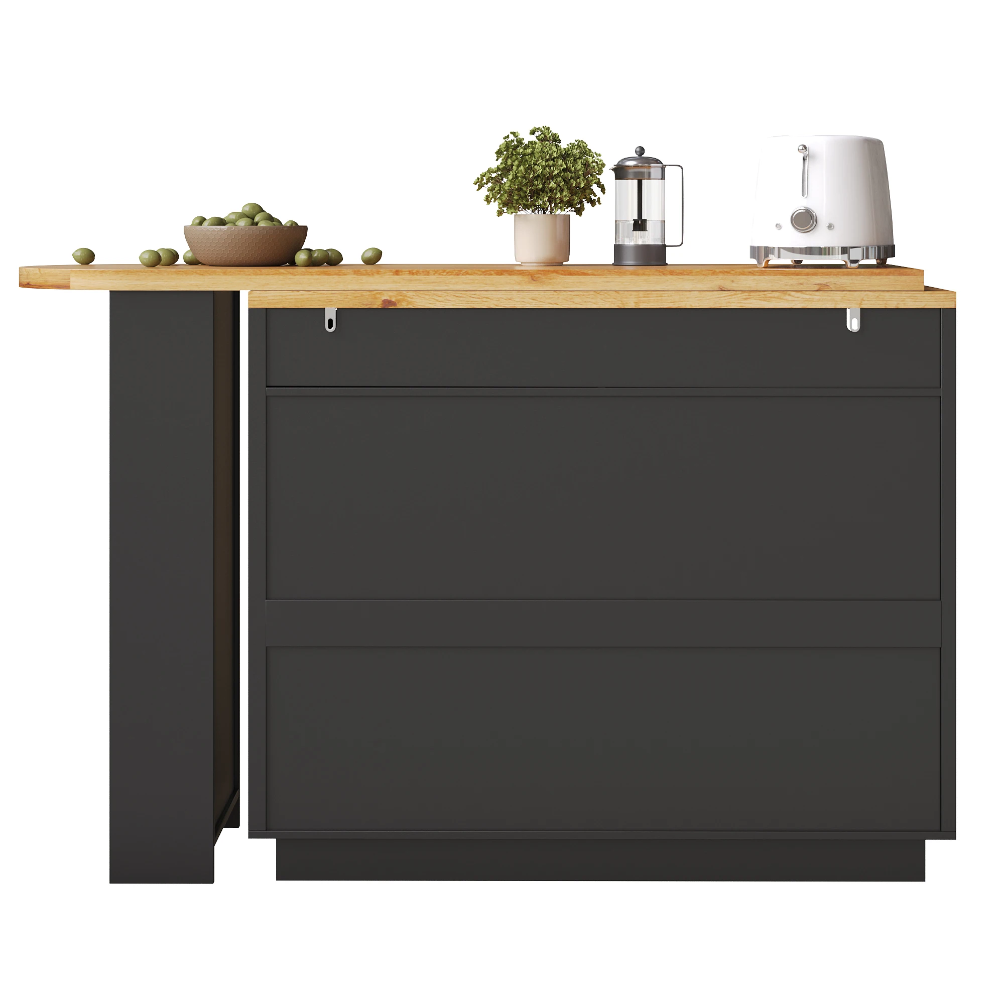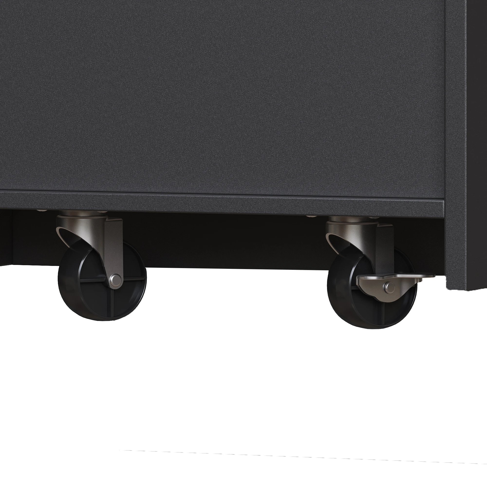2. Smooth rolling & safety features: The extendable tabletop has concealed swivel casters, while the cabinet is equipped with anti-tip devices. This ensures effortless mobility while maintaining stability and safety. The rotating tabletop easily adapts to different situations.