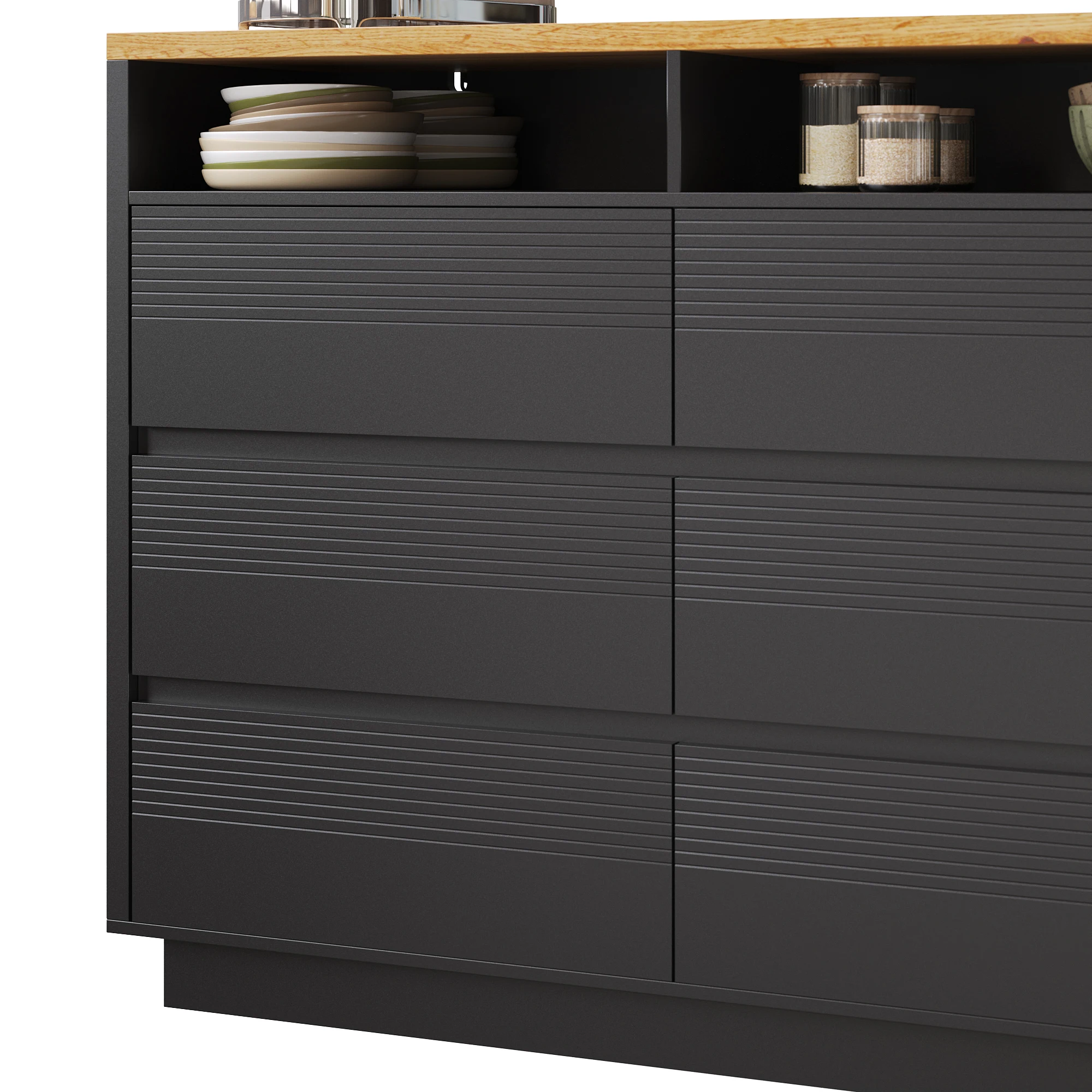 5. Appealing design & practical details: Impresses with elegant cabinet doors combined with open compartments. Concealed casters and anti-tip protection ensure safety and a clean overall look.