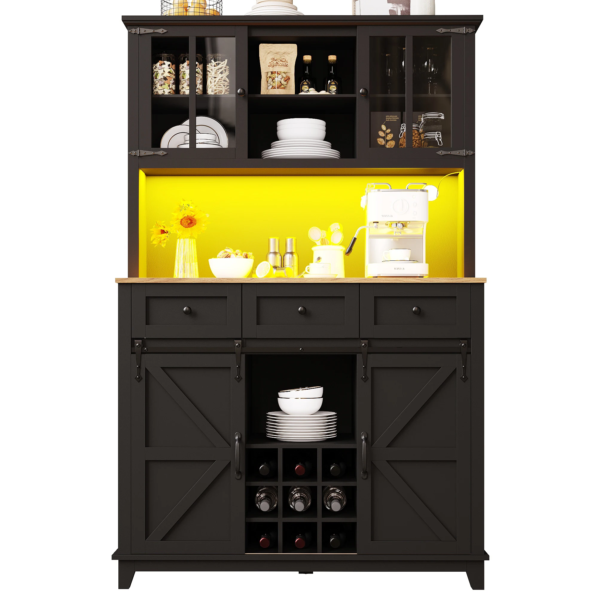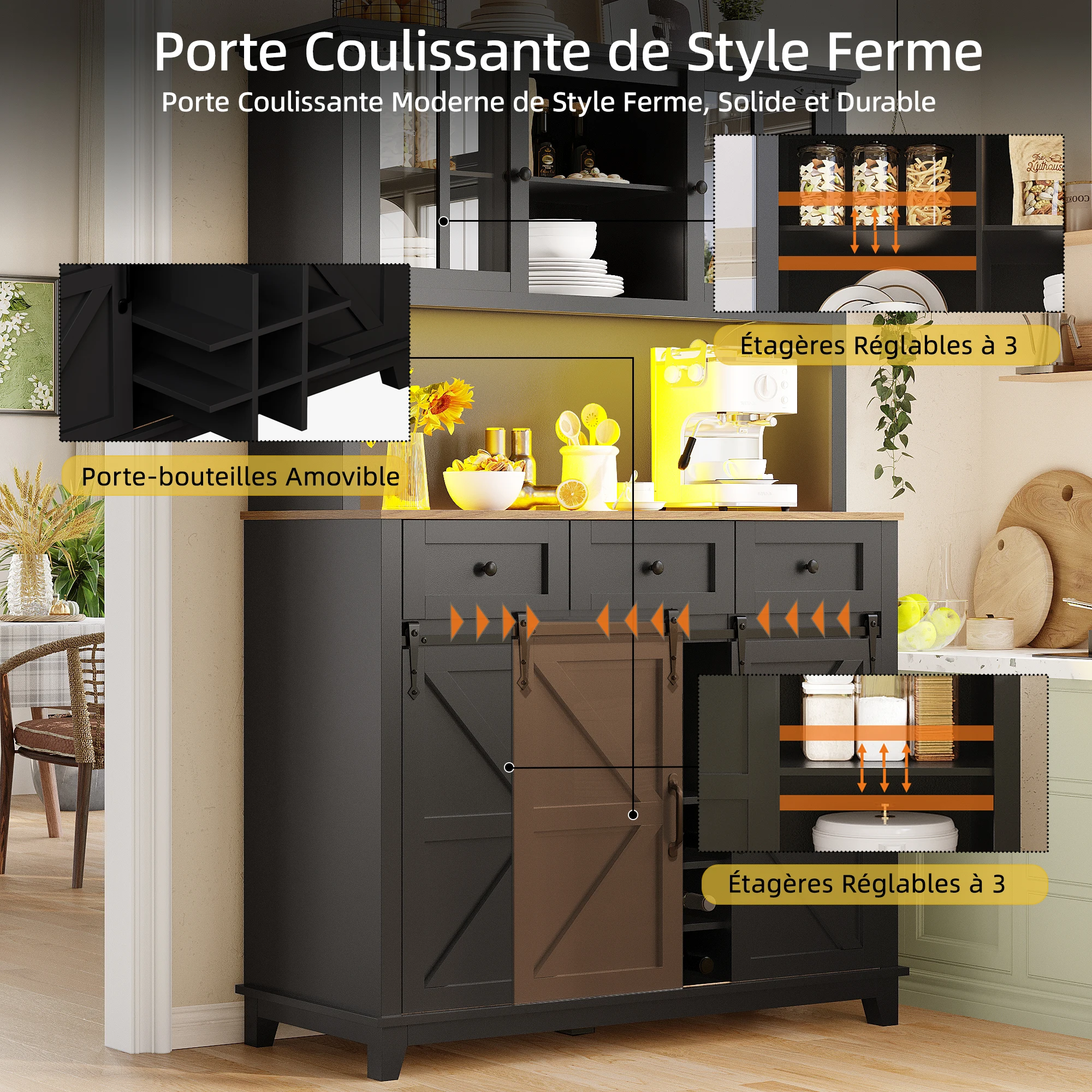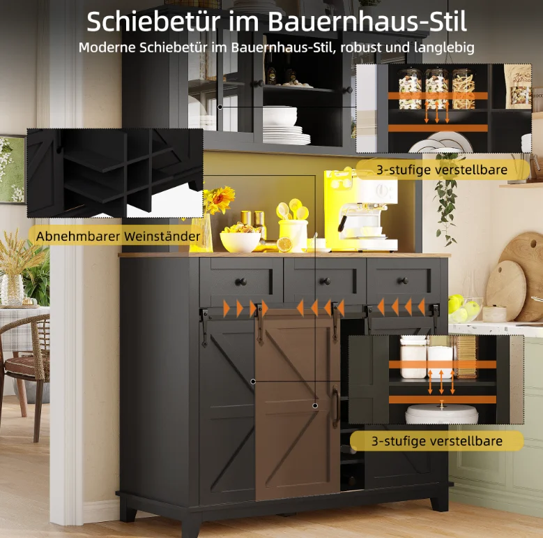 Perfect for organizing kitchen essentials and displaying decor. Ideal for dining rooms or living spaces.
