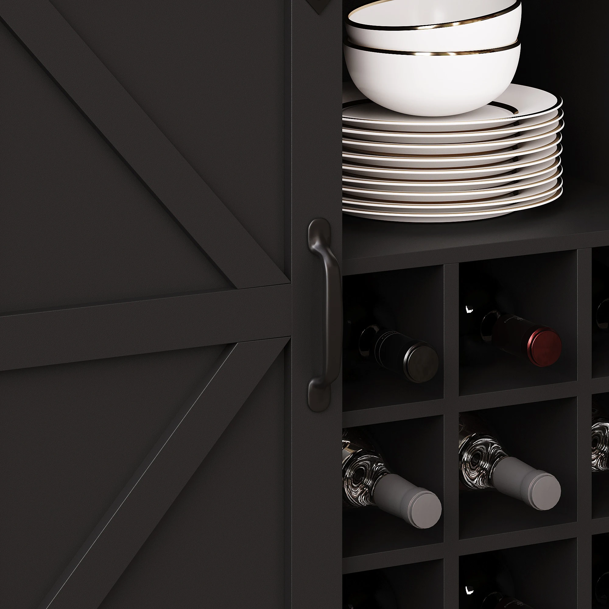 5. Practical Storage: Removable wine rack insert and three adjustable shelves – ideal for wine, books, or decorative items.