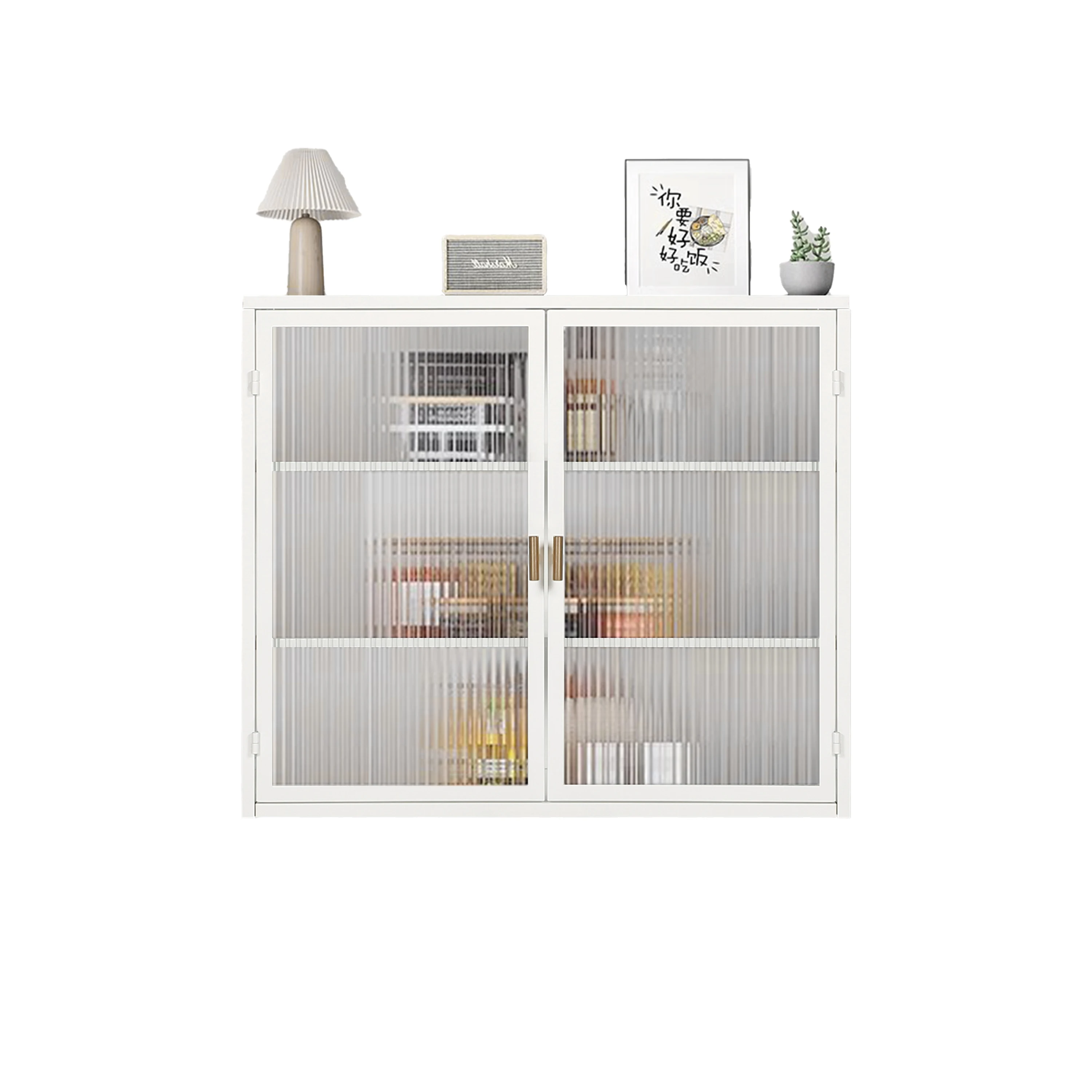 2. Selected Materials: It is made of iron and tempered glass, combined with meticulous craftsmanship, creating a compact connection between the accessories, making the sideboard stable and durable. The sturdy construction provides exceptional strength and stability. Easily resists rust, erosion, and wear. Featuring a ribbed glass design that provides excellent light transmission while remaining non-perspective, this storage cabinet with a modern aesthetic is an optimal choice.