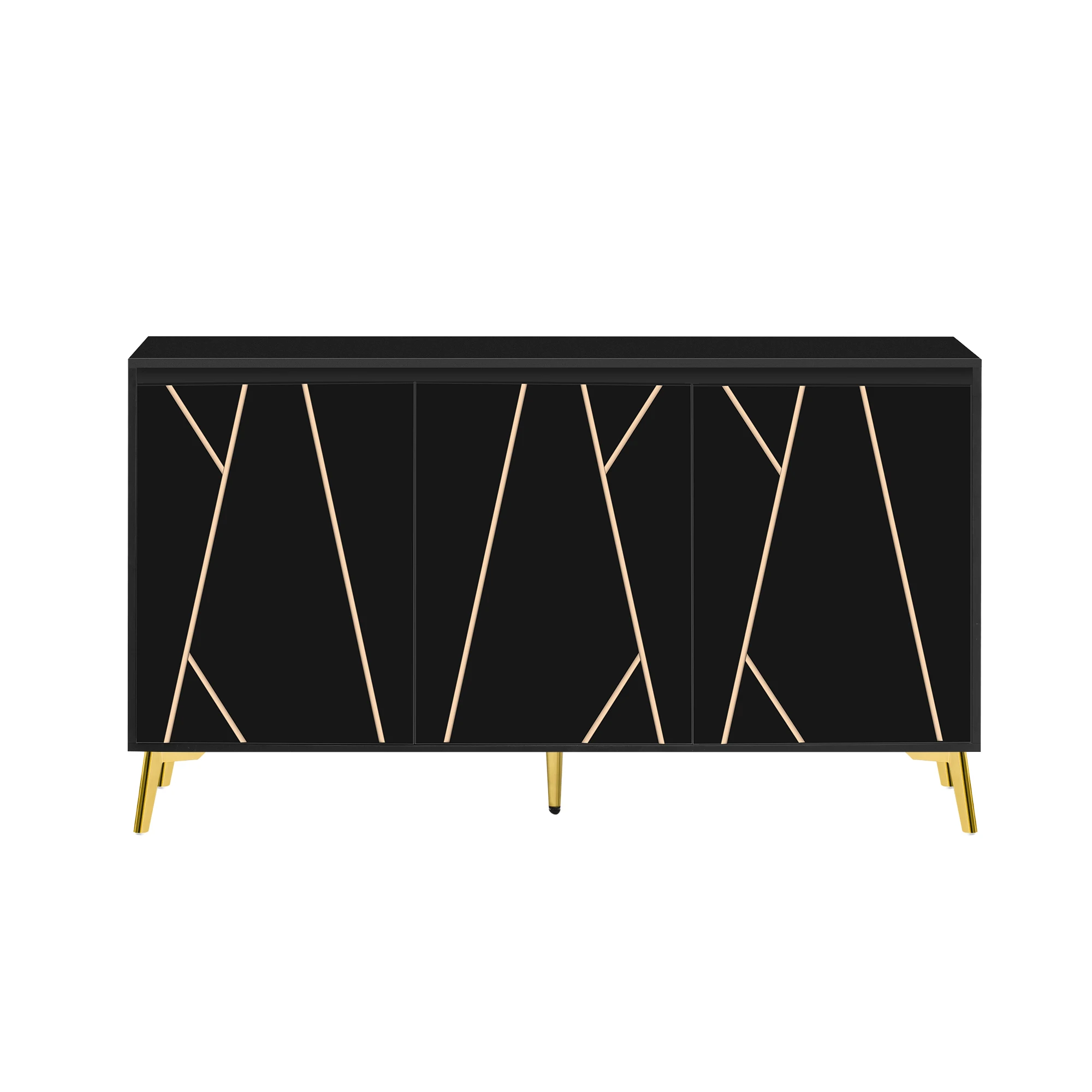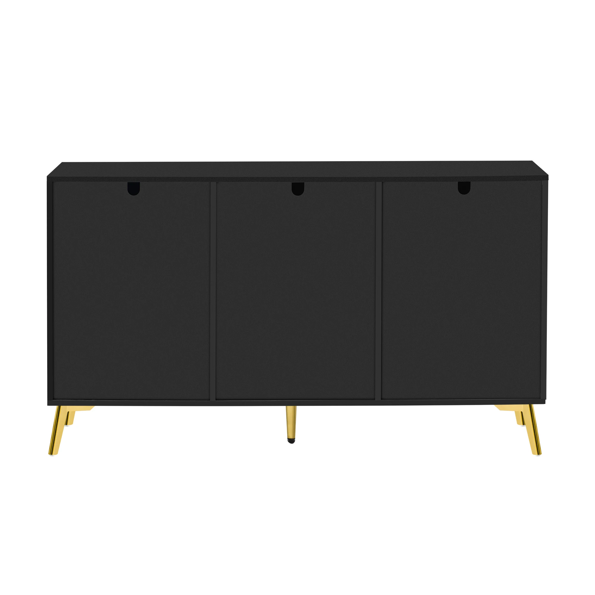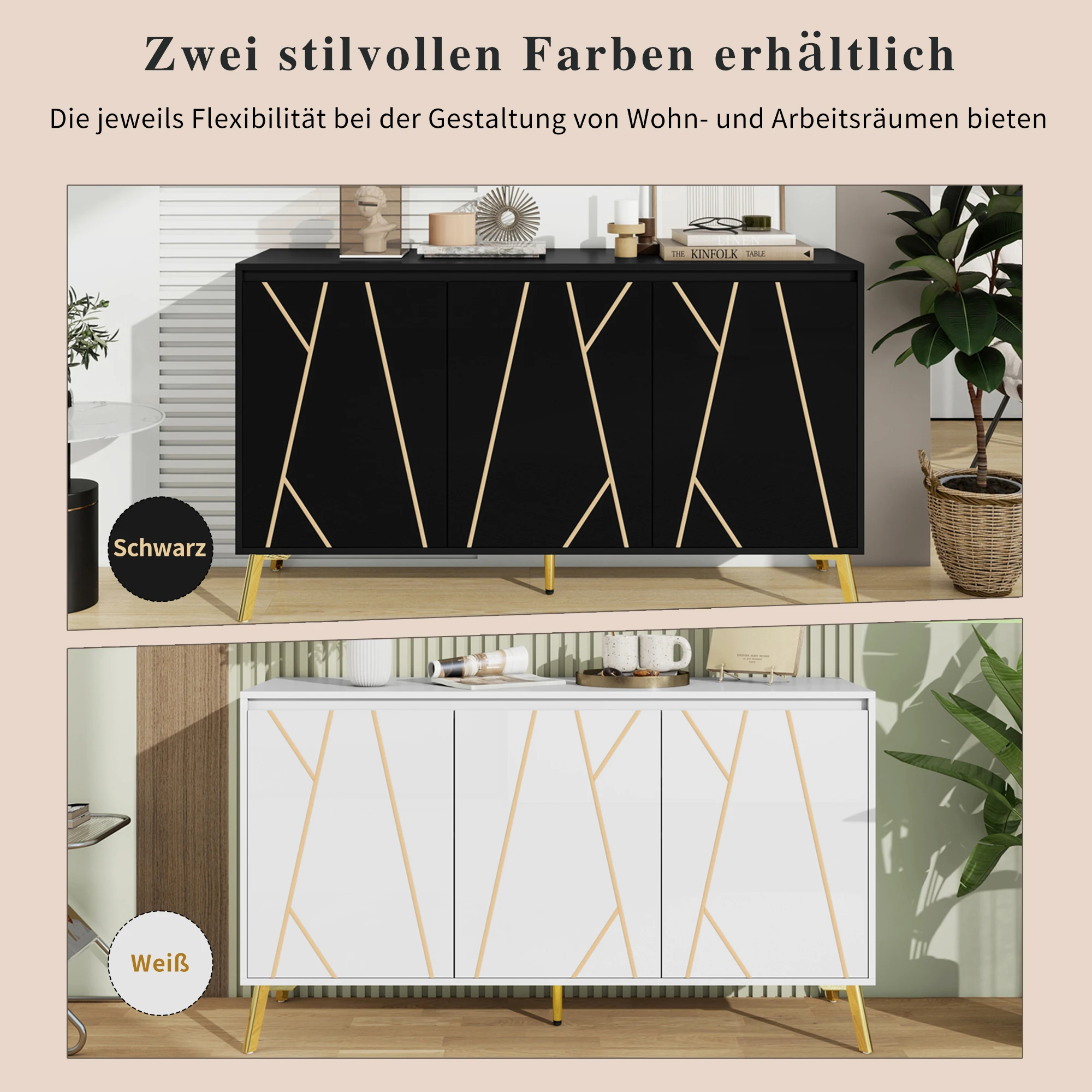 Modern style, unique design, 3-door sideboard, handleless, for dining room, living room, kitchen, buffet (black, white)