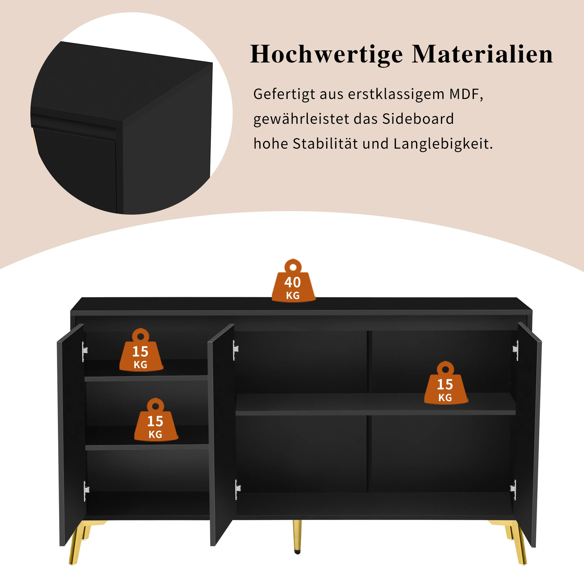 3. High-Quality Materials: Made of premium MDF, the sideboard ensures high stability and durability. The top surface can support up to 40 kg, and the adjustable shelves can each support up to 15 kg.