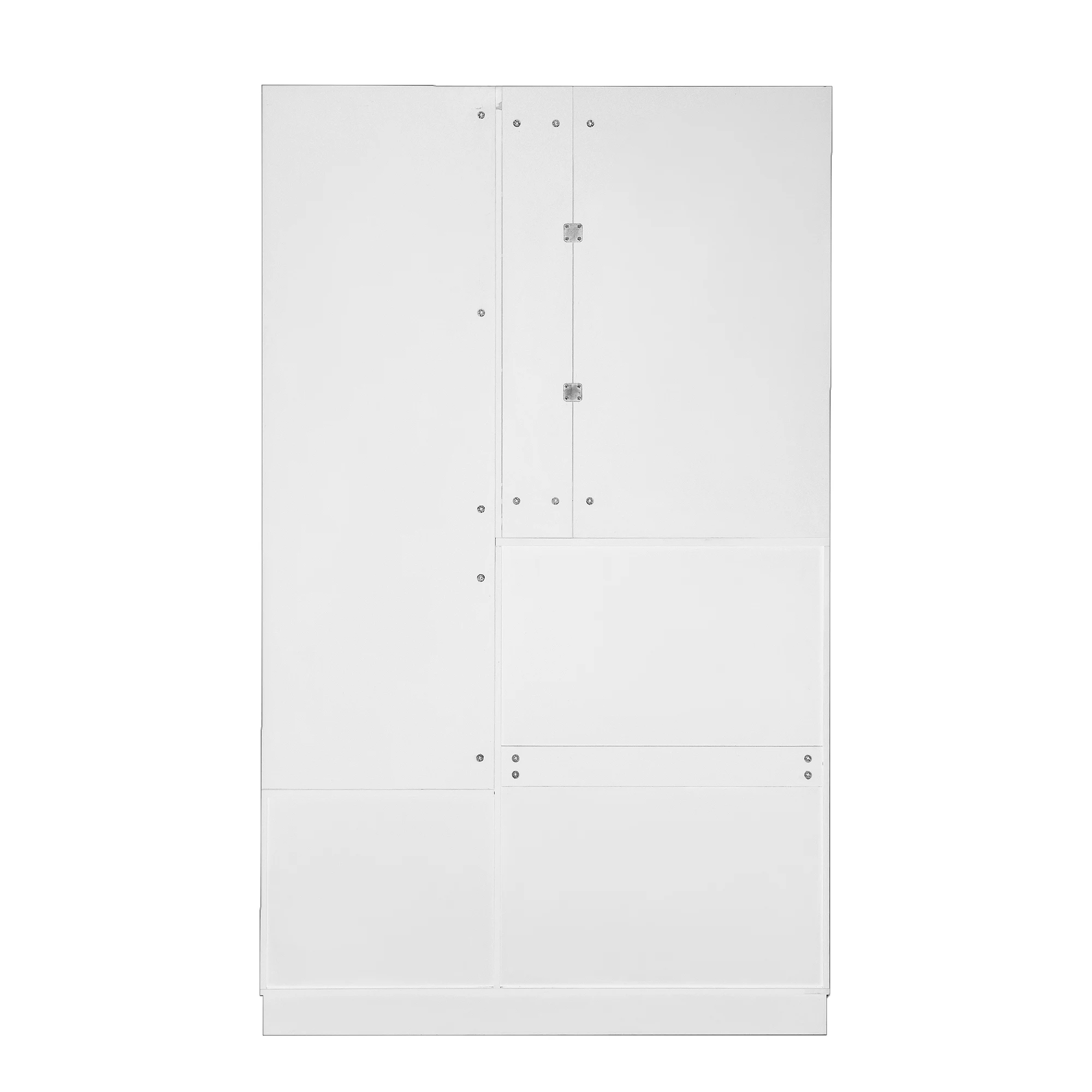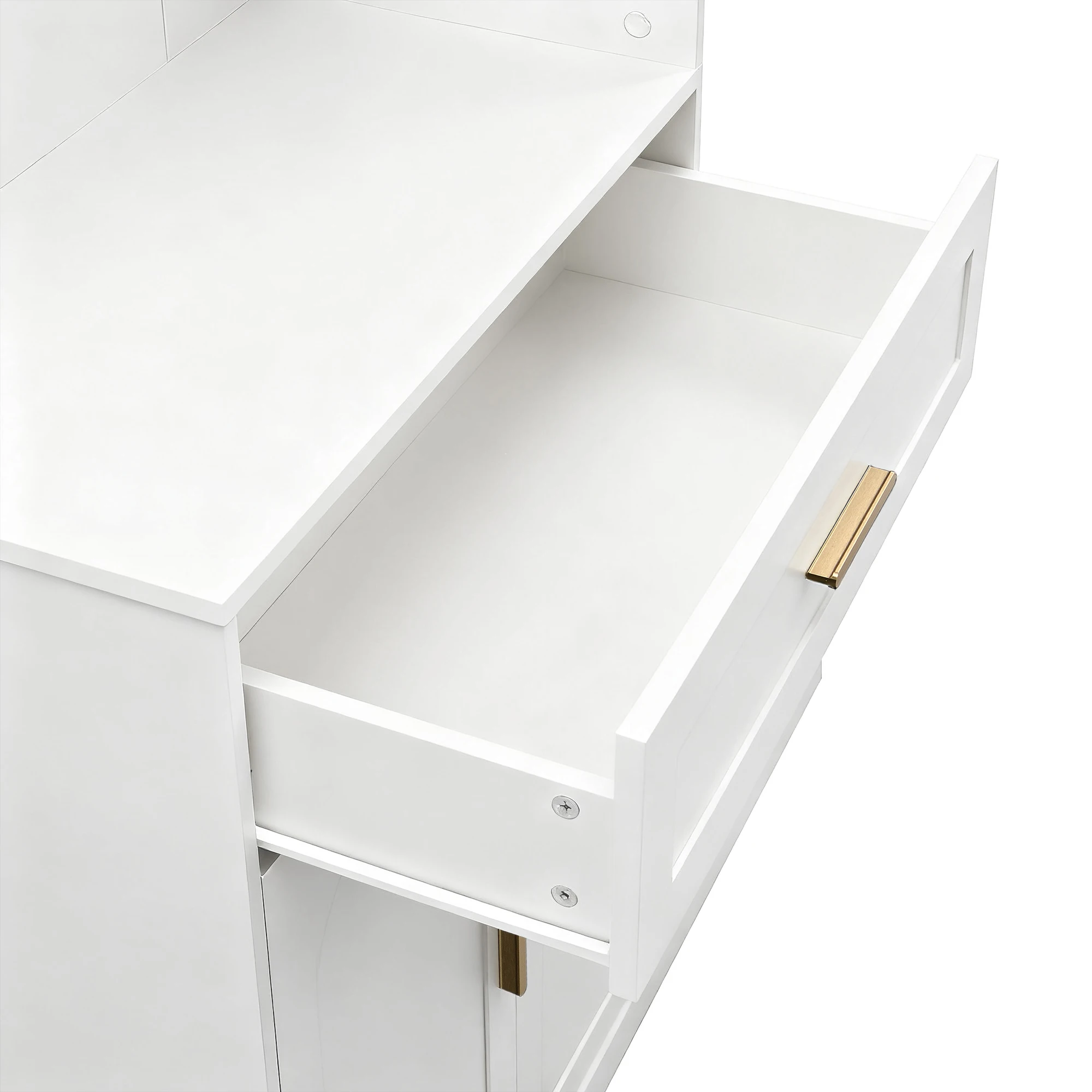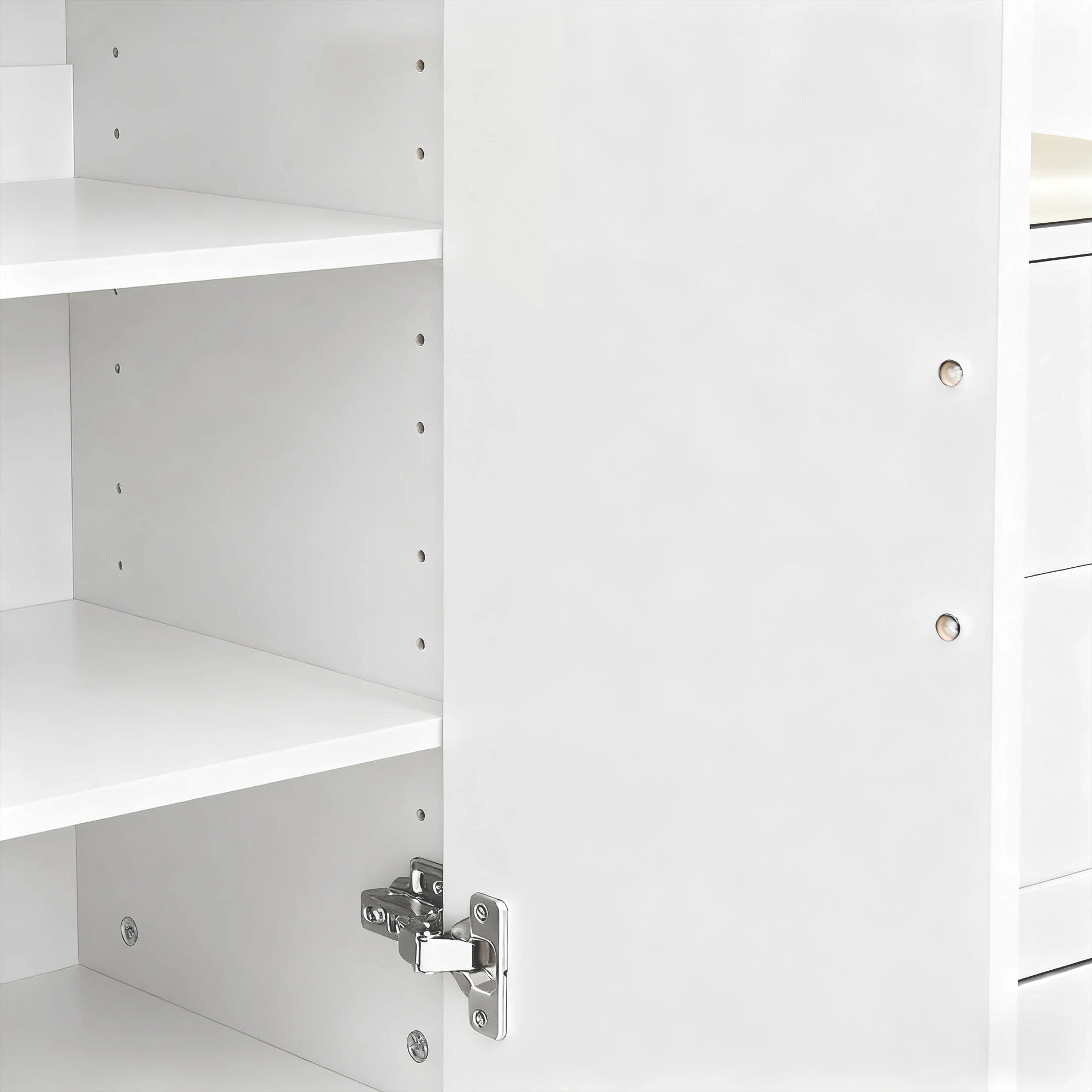 1. Stylish Design: A modern and simple design with white accents, curved doors, and square drawers creates a sophisticated and durable aesthetic. The compact design and small size effectively save space.