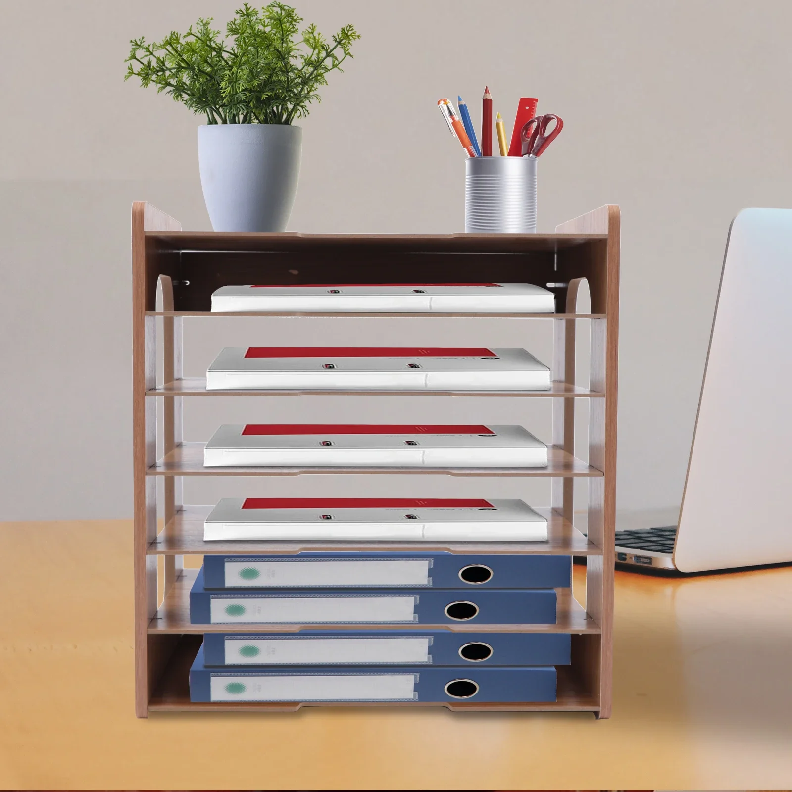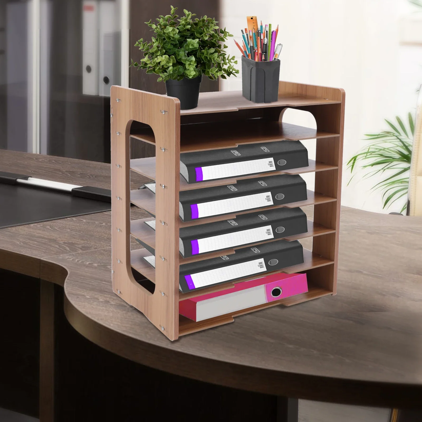 Soporte de madera para escritorio de oficina, organizador de archivos, bandeja para cartas de papel A4, almacenamiento de documentos, estante de almacenamiento de revistas de escritorio de 7 niveles