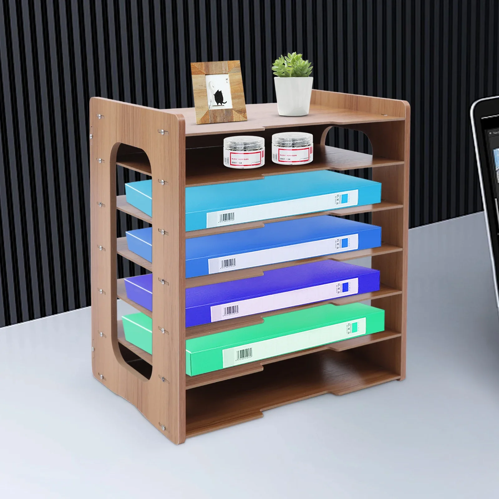 Is your desk very crowded? Do you feel like you can't always find the files you need while working? Are you still looking for a suitable desktop organizer? Then you can't miss our 7-tier office paper organizer. It's made of high-density board with a large capacity which is sturdy and durable. You deserve it!