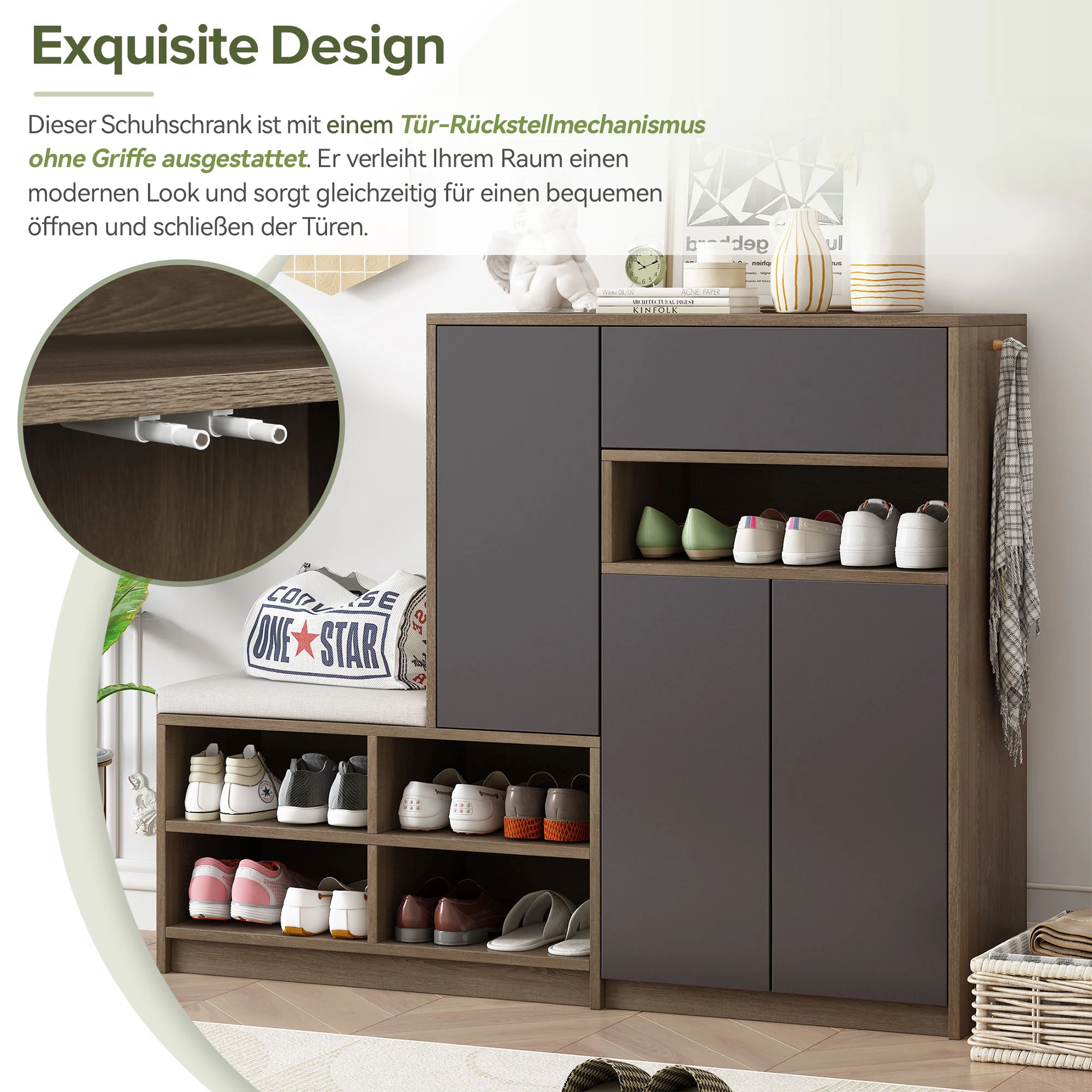 This shoe cabinet features a handle-free, rebound door design, adding a modern look to your room while providing the convenience of easy opening and closing.