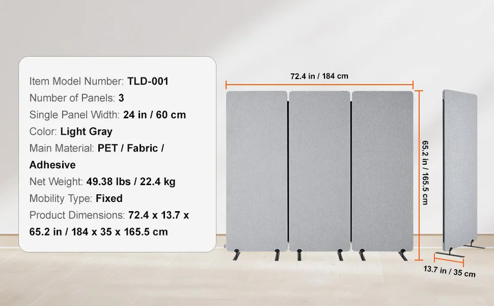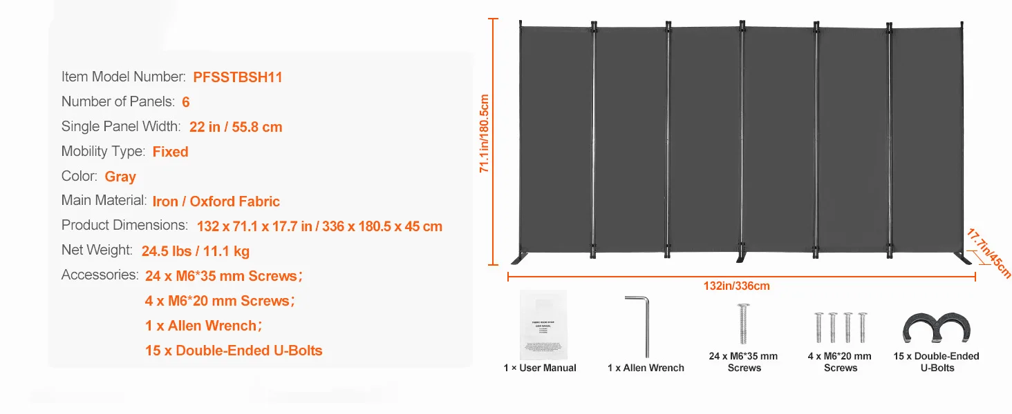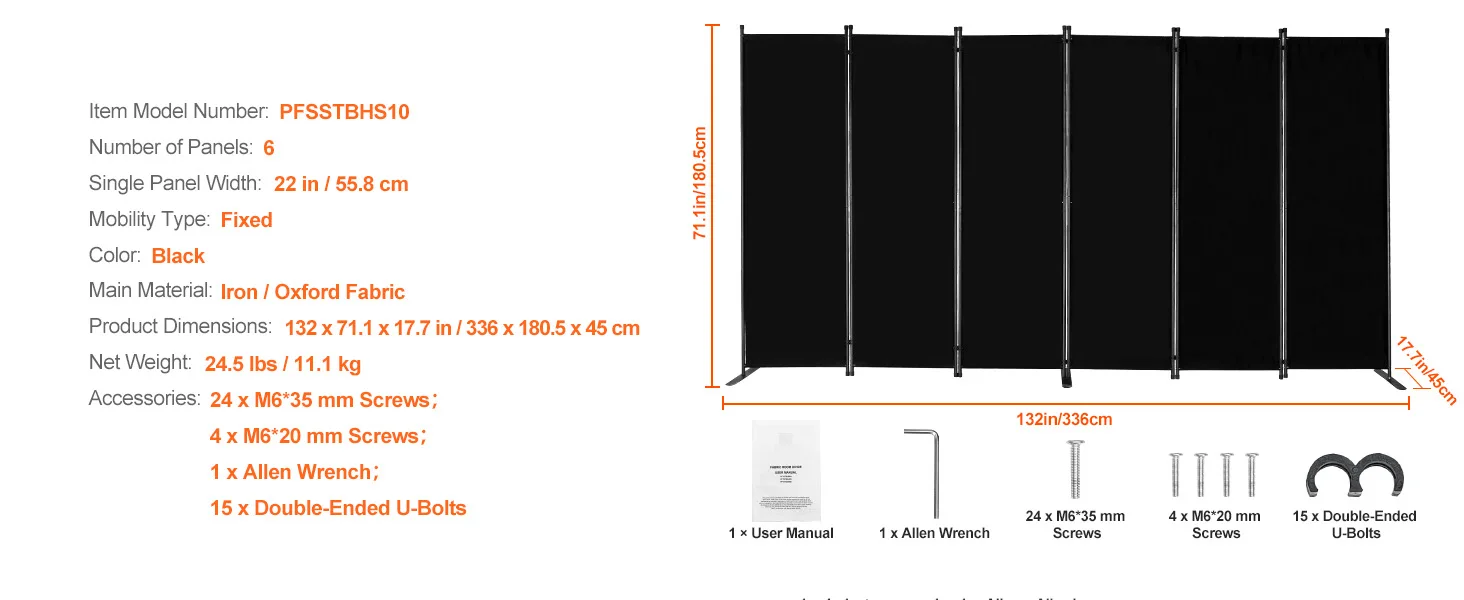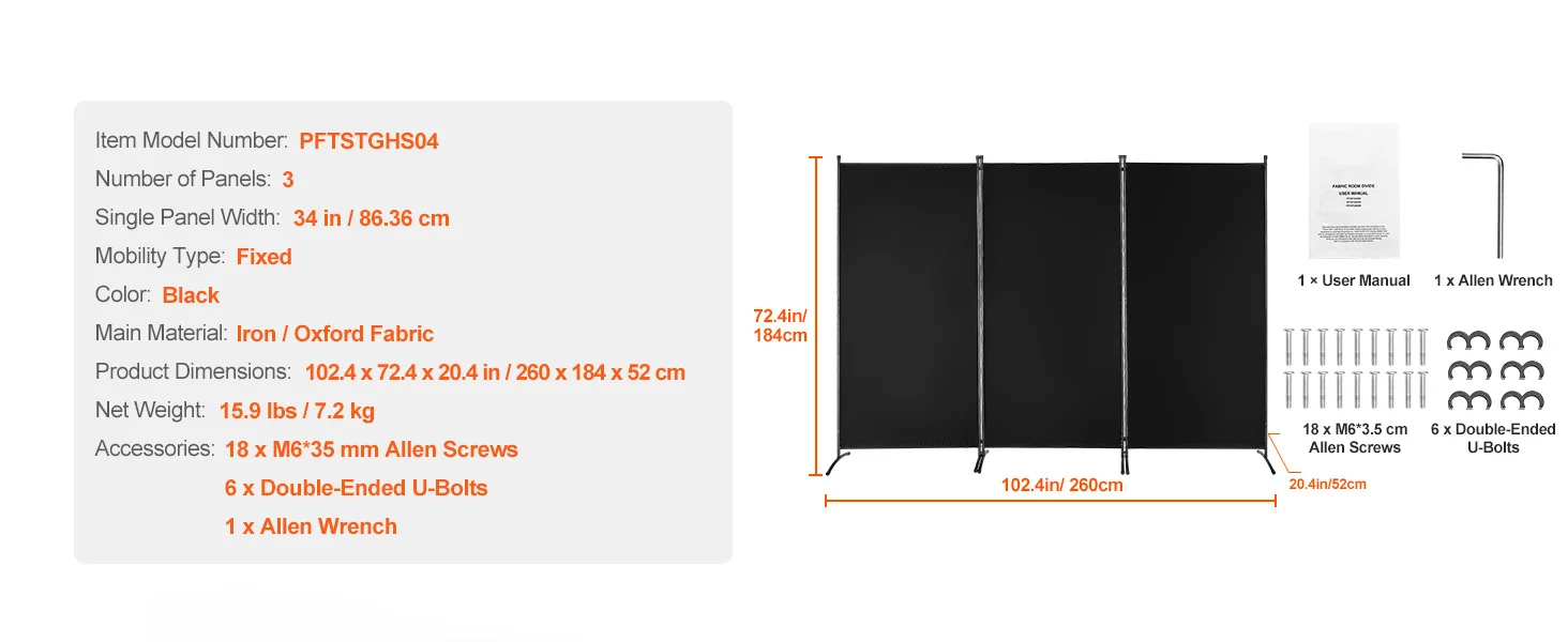 Space-Saving Foldable Feature: Measuring 3464 x 1840 x 520 mm, with each panel at 34 W x 72.4 H inches, this foldable divider is easy to store. It’s lightweight and portable, allowing you to reposition it or store it in a corner when not needed.