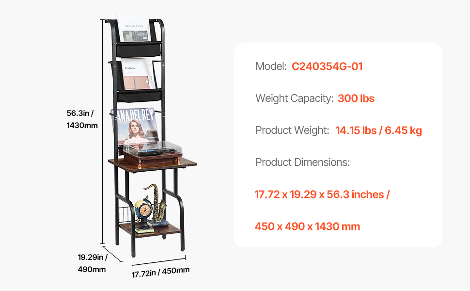 Multi-Purpose Design: This record player shelf is more than just a storage solution for vinyl records. It can also serve as a bedside table, side table, or coffee table. With its retro-inspired design, it blends effortlessly into various spaces, enhancing both practicality and aesthetic appeal in your home.